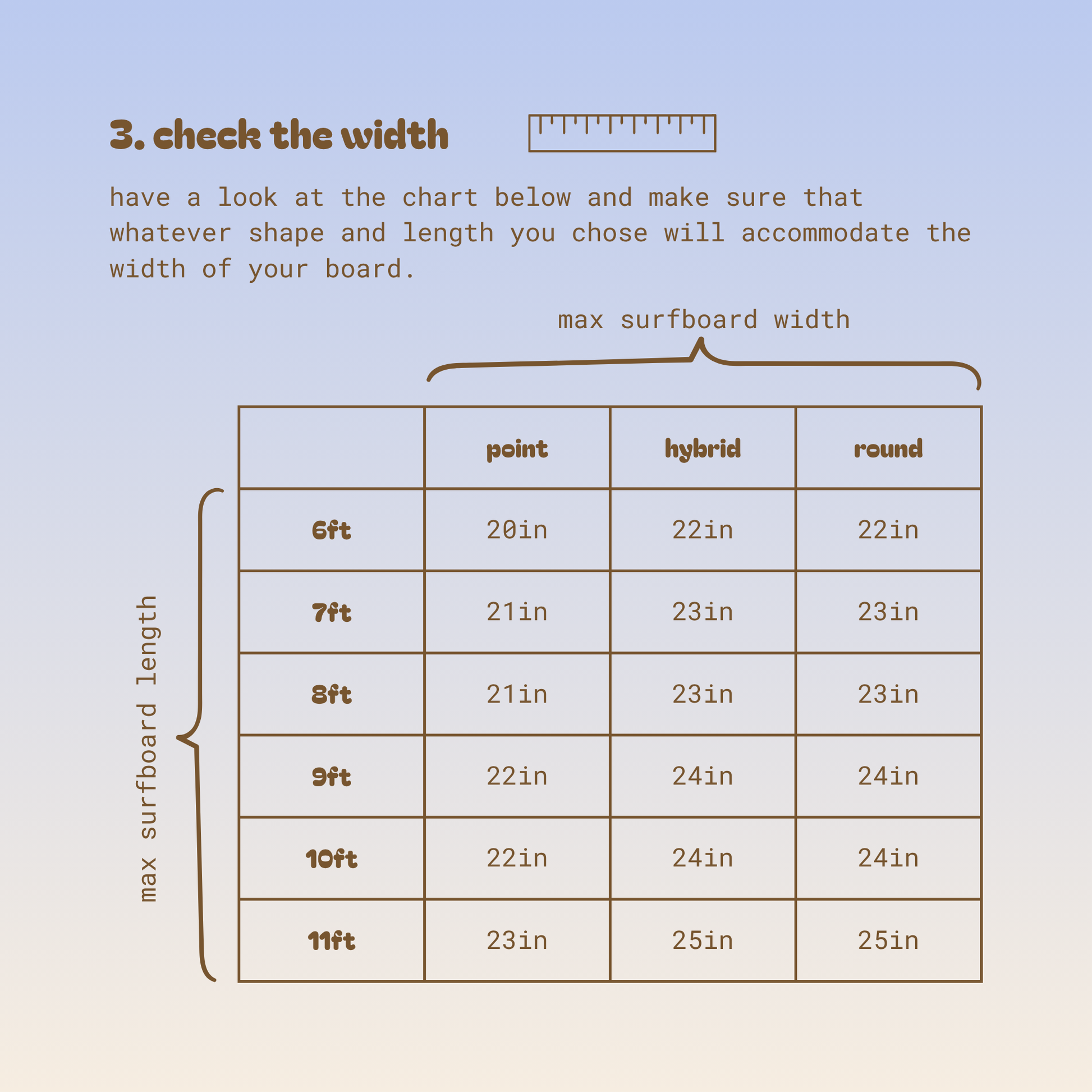 i can customise the length and width of the bag to ensure it fits the exact dimensions and shape of your board. get in touch at lotti@halfisland.ie or use the contact form below.